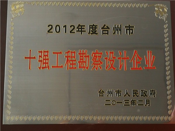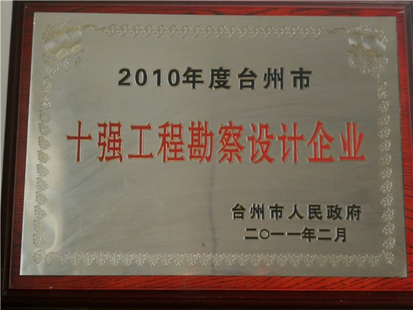 2010年度臺(tái)州市十強(qiáng)工程勘察設(shè)計(jì)企業(yè)