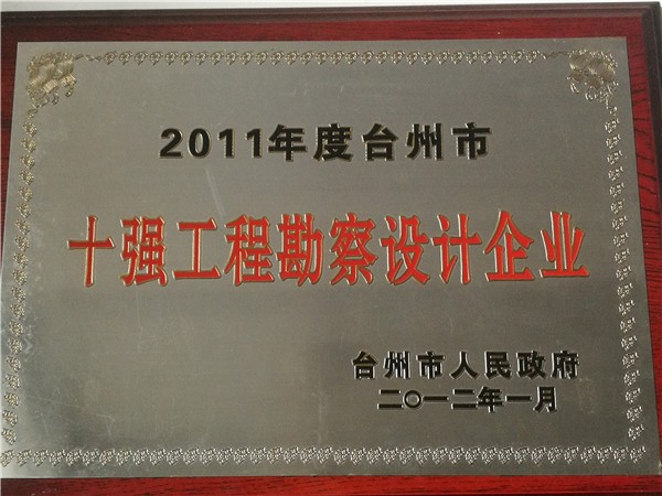 2011年度臺(tái)州市十強(qiáng)工程勘察設(shè)計(jì)企業(yè)