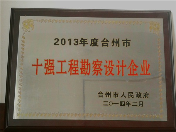 2013年度臺(tái)州市十強(qiáng)工程勘察設(shè)計(jì)企業(yè)