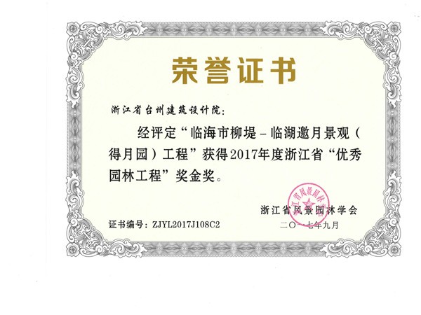 臨海市靈湖柳堤-靈湖邀月景觀工程獲2017浙江省“優秀園林工程”獎金獎