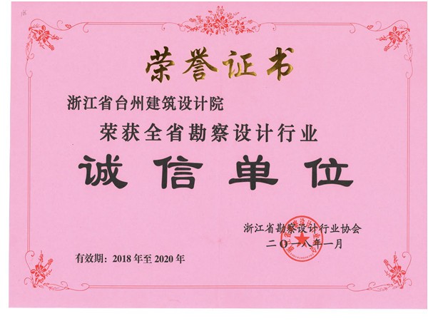 臺州建筑設計院榮獲全省勘察設計行業誠信單位